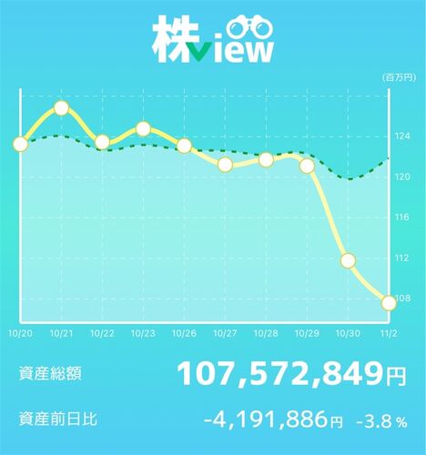 敗戦処理諸々でさらに資産減しました。 個別でくらいましたが、かなり守備的になってるので、ここからはそう大きな変動は起こりにくいとは思いますが、それにしても食らいましたね…。 なんか最近守備するタイミングはいいのに、選別でミスって周りと同じよう…